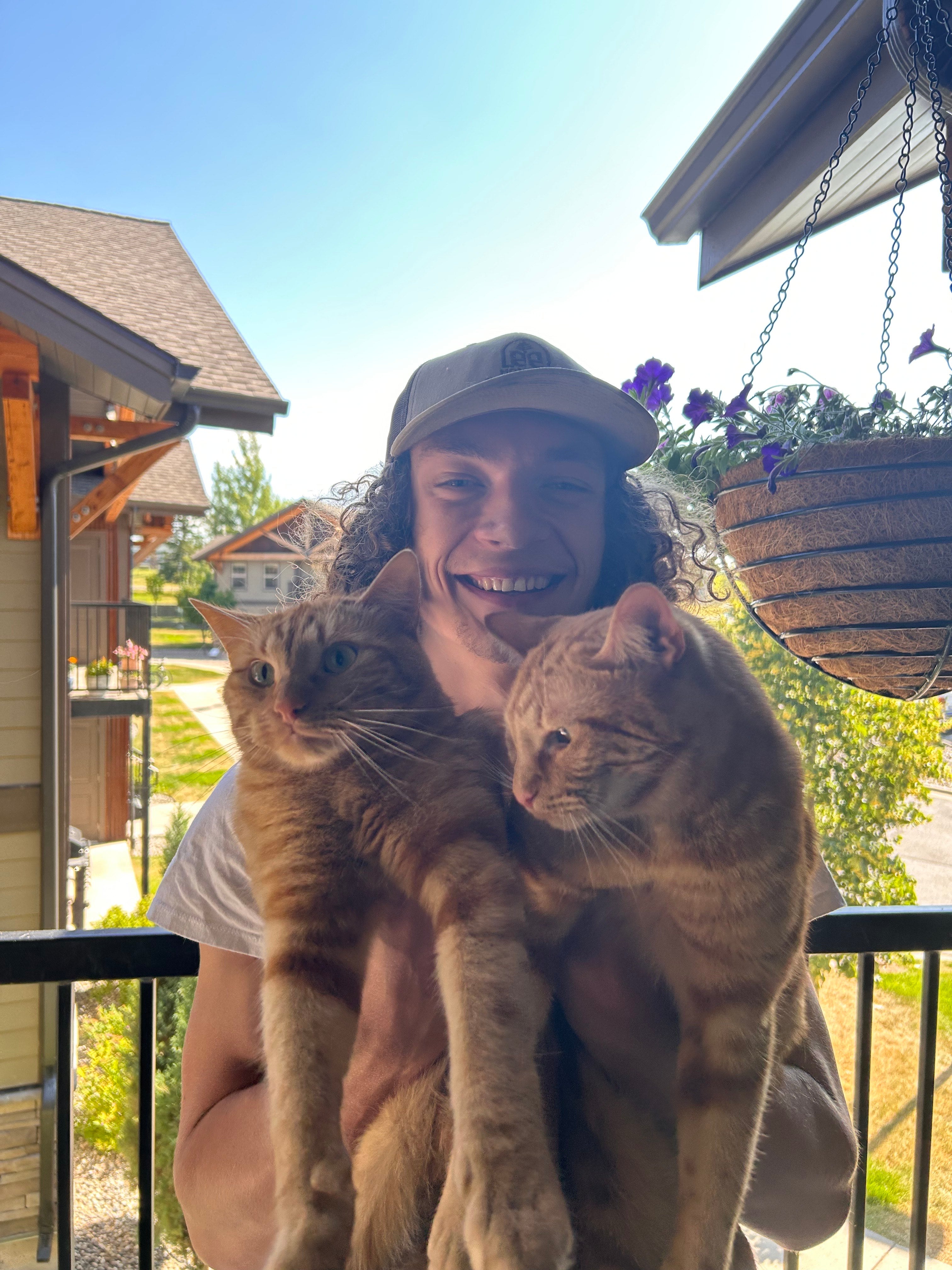 Max was raised in Alaska and has always been surrounded by animals of all kinds. Whether it was the 3 dogs he grew up with or the wild moose eating his family's crabapple tree, they were always nearby. This personal connection to animals led him to work at a pet hotel and frequently volunteer to pet sit for neighbors and family friends. His passion for animals led him to move to Montana and pursue a degree in Conservation Biology so he could better protect the animals that inspired him. Once in Montana, he adopted 2 orange cats and a corn snake to keep him company. When he's not doing schoolwork, he enjoys hiking, gardening, decorating his snake's tank, and lounging on the patio with his cats.