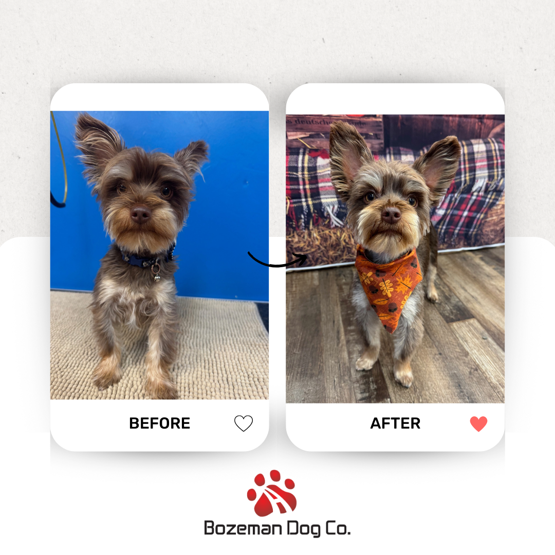 My love for animals began when I was a child, so no one was surprised that I grew up working with them! During high school I began working as a kennel attendant at an animal hospital and then trained as a vet technician. Before moving to Montana, I spent 20 years as a tech at an animal hospital in Texas. I had many duties from drawing up vaccines to prepping animal patients and assisting in their surgeries. These experiences taught me a lot about different dog breeds and how to deal with various dog behaviors, among other things I learned dog restraint, dog handling and CPR. I grew up grooming our cat and cocker spaniels, and as an adult, my giant schnauzer and Airedale. I’m always striving to improve my grooming skills through practice, study, and working with a very skilled mentor. Our family also volunteered for a French bulldog rescue. We had 15 frenchies come through our house with health and/or skin issues! We adopted one ourselves. It was rewarding to get them well and into their forever homes. In my free time, I like to spend time outdoors with my husband, kids and dogs. I also enjoy cooking, finding a new coffee shop and bird watching- we have a few as pets but also the larger wild birds.